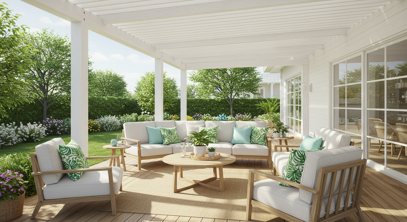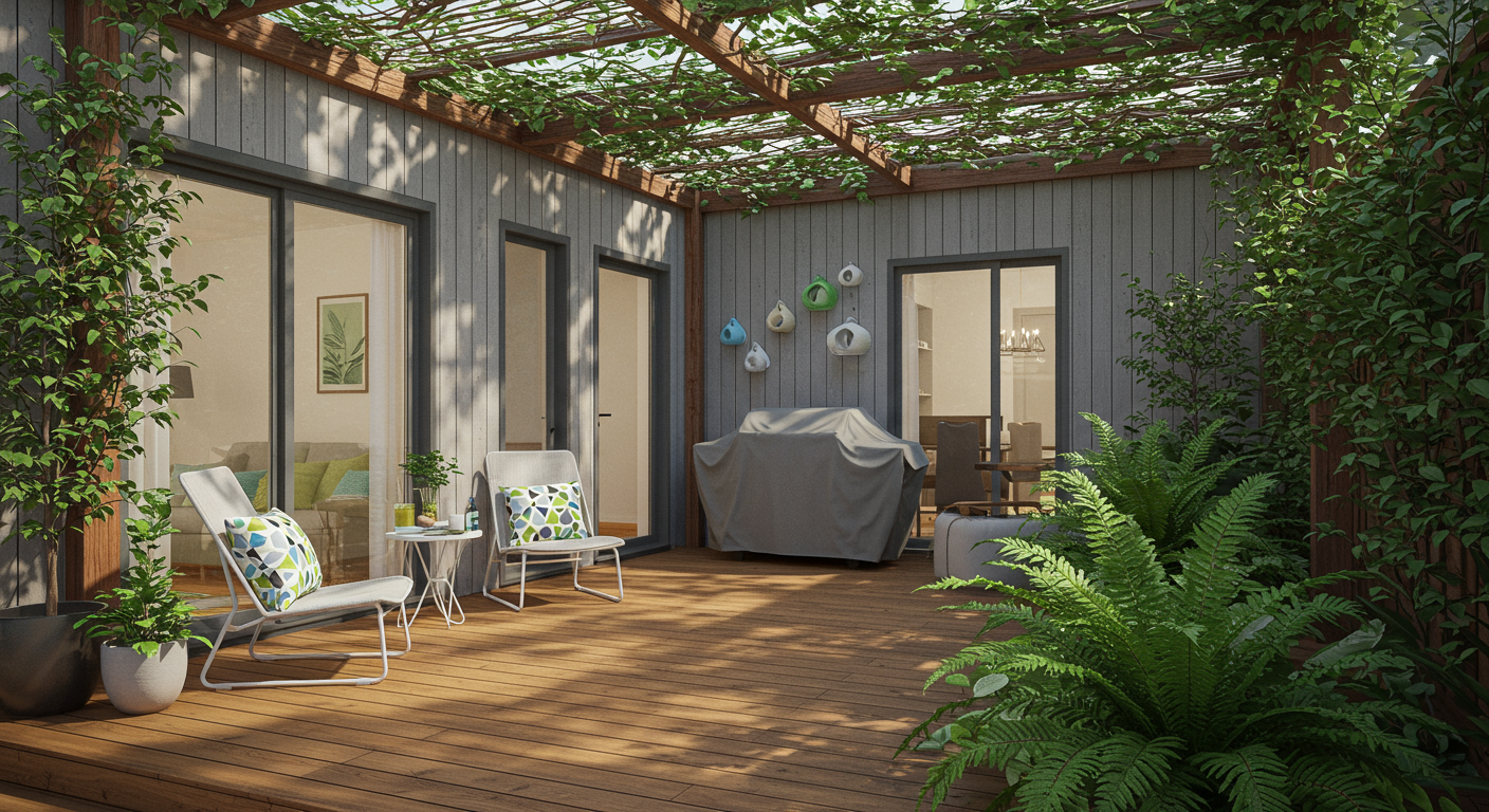Covered Sitting Area with Grilling Pergola: Whether you're a seasoned grill-master or a casual barbecuer, the covered sitting area with a lighted grilling pergola will become your outdoor sanctuary.