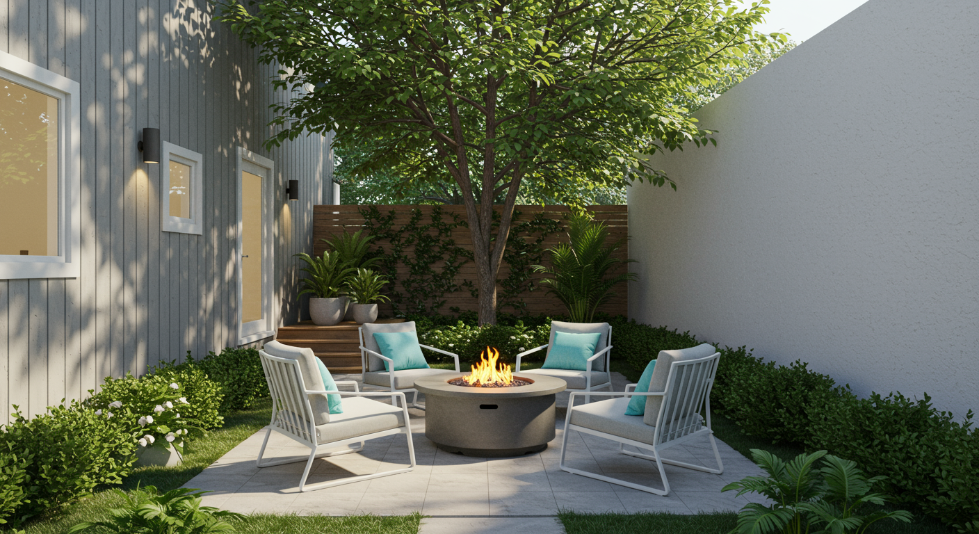 Courtyard with Firepit: The courtyard is an enchanting space, perfect for those warm Florida evenings. Gather around the firepit and create memories that will last a lifetime.