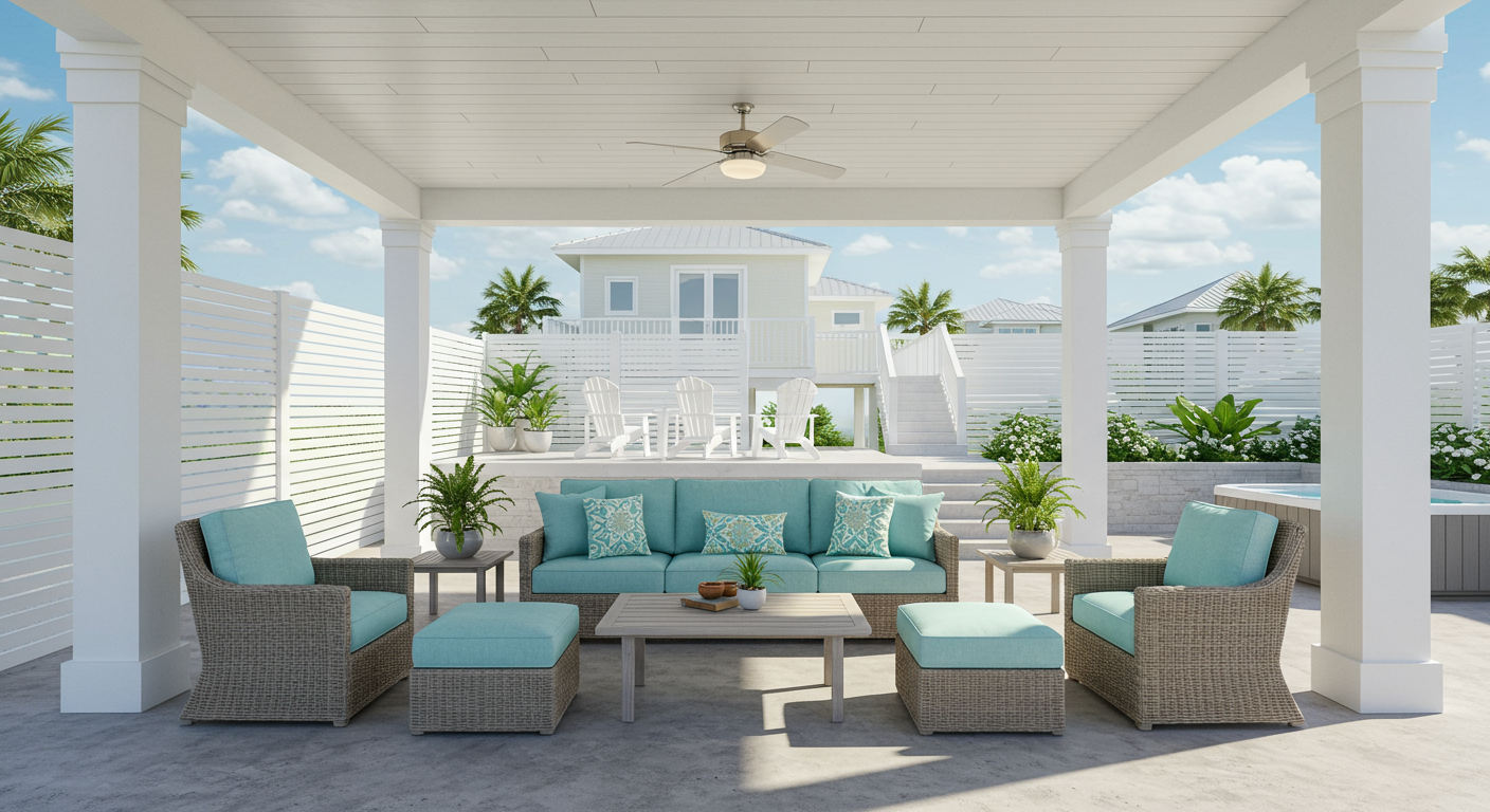 While the interior of One More Night is stunning, the outdoor spaces are equally captivating. The 55-by-10-foot deck offers panoramic views of the beach, named 2023’s best beach in America by Dr. Beach. This deck is perfect for watching sunrises and sunsets, providing a tranquil space to unwind and soak in the natural beauty.