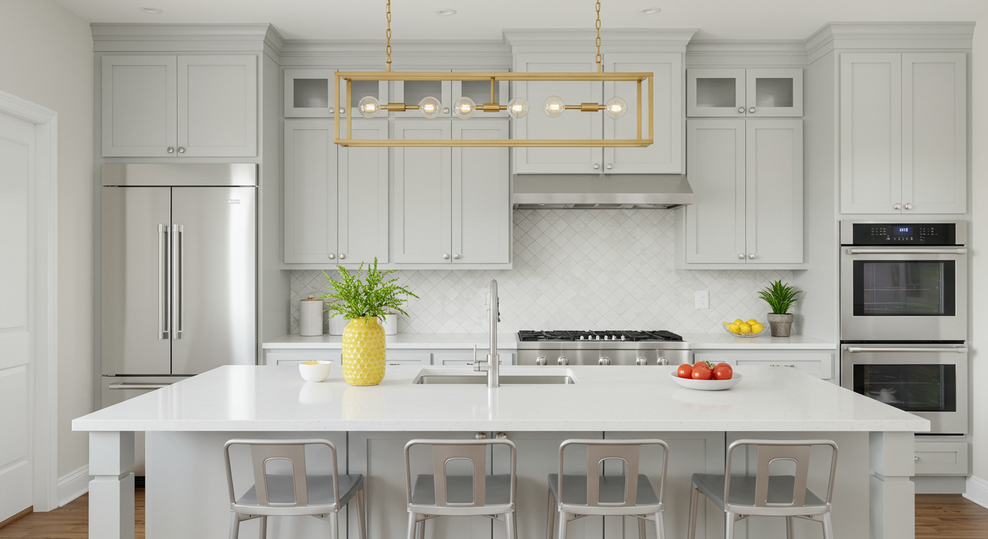 The kitchen is a chef’s dream, designed to cater to large gatherings. It features two French door refrigerators, two dishwashers, a double oven, and cabinets that stretch from floor to ceiling. The dining area is equally impressive, with a 10-seat dining table and additional seating for eight at the kitchen bar. This home effortlessly combines functionality with elegant design, ensuring that meal times are a joyous communal experience.